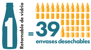 De acuerdo con esto, las botellas de vidrio retornable generan el menor impacto ambiental posible ya que, por su robustez son capaces de ser reutilizadas múltiples veces antes de ser recicladas, disminuyendo así de forma muy importante el consumo de energía y, casi por completo el uso de materias primas y desechos sólidos al evitar del todo la producción de nuevos envases.