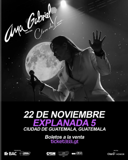 La legendaria cantante y compositora mexicana Ana Gabriel regresa a los escenarios con una de sus giras más emotivas e inolvidable hasta la fecha: “Claro de Luna.” La artista multi-platino, conocida por su potente voz y actuaciones sinceras, dará inicio a su nueva gira en agosto del 2025, recorriendo 20 ciudades principales de EE.UU. y países de Centro América. Durante más de 50 años de carrera, Ana Gabriel ha cautivado a audiencias de todo el mundo con su inconfundible voz y éxitos atemporales como “Simplemente Amigos,” “Quien Como Tu,” “Ay Amor,” “El Cigarillo,” y “Luna.” Con más de 40 millones de discos vendidos, múltiples nominaciones al Grammy y al Latín Grammy, y una de las voces más distintivas en la historia de la música, Ana Gabriel es más que una artista: es un fenómeno cultural. Su fusión de ranchera, pop y baladas latinas resuena con una emoción cruda, una narrativa poderosa y una autenticidad sin miedo. Esta gira que visitará Guatemala, el 22 de noviembre en Explanada 5, invita a los fans a una velada inolvidable de música sincera, recuerdos entrañables y un toque de magia bajo la luz de la luna. Para los fieles seguidores que han esperado años por su regreso, esta gira no es solo un concierto, es un reencuentro largamente esperado y una celebración compartida con quienes han caminado este viaje a su lado. Desde la primera nota hasta la última ovación de pie, será una noche que llevarás contigo para siempre. Sobre Ana Gabriel: Ana Gabriel es una icónica cantante y compositora mexicana. A lo largo de su carrera, ha lanzado 28 álbumes de estudio, tres álbumes en vivo y 19 álbumes recopilatorios, vendiendo más de 40 millones de discos en todo el mundo. Tres de sus álbumes han alcanzado el puesto número uno en la lista Billboard Latín Pop Albums, y siete de sus sencillos llegaron al número uno en el Billboard Hot Latín Songs, incluyendo “Ay Amor,” “Es Demasiado Tarde” y “Quién Como Tú.” En 2021, Ana Gabriel recibió una estrella en El Paseo de la Fama de Hollywood, en reconocimiento a su destacada contribución a la industria musical. Posteriormente, en junio de 2024, fue incorporada al Salón de la Fama de Compositores Latinos durante la quinta edición de los Premios La Musa.