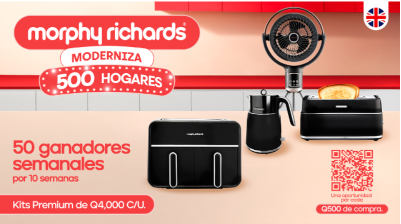 La reconocida marca inglesa de electrodomésticos y productos para el hogar, Morphy Richards, continúa marcando tendencia en Guatemala con su campaña “Morphy Rcihards moderniza 500 Hogares”, una iniciativa que entregará Q2 millones en productos para equipar a cientos de hogares con productos funcionales, modernos y de vanguardia. La promoción ya ha beneficiado a decenas de familias y sigue transformando espacios con innovación, diseño y tecnología.