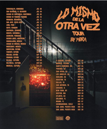 - El reconocido productor latino y artista global Mora anunció hoy su nueva gira mundial, "LO MISMO DE LA OTRA VEZ", tras un sorpresivo anuncio y dos conciertos agotados en el histórico Coliseo de Puerto Rico. Este verano, Mora iniciará su gira por Latinoamérica,y España antes de trasladar el espectáculo a Estados Unidos, donde realizará más de 17 paradas por todo el país, incluyendo Los Ángeles, Miami, Nueva York y más.