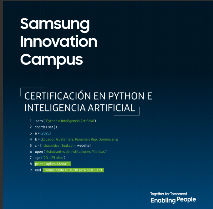 Samsung Innovation Campus abre convocatoria para certificación en Python e Inteligencia Artificial en Ecuador, Guatemala, Panamá y República Dominicana