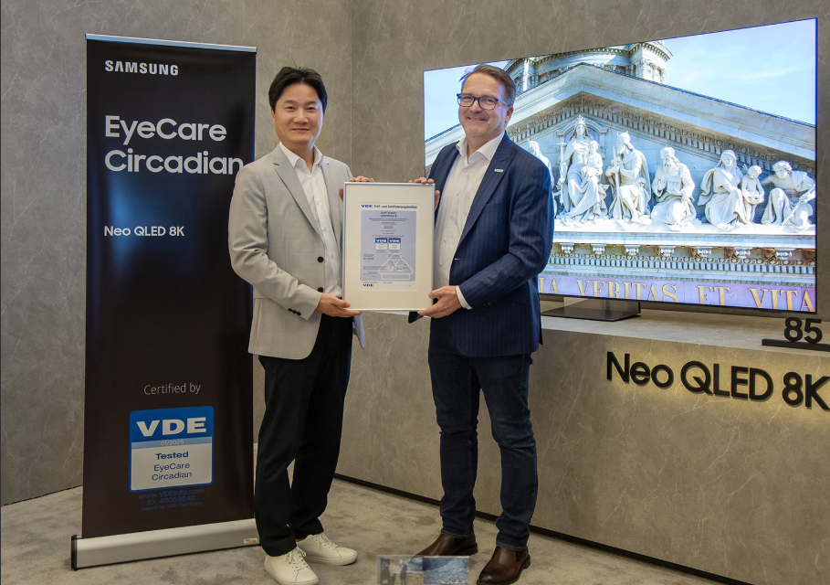 Samsung Electronics ha sido reconocido por la Verband Deutscher Elektrotechniker (VDE), el prestigioso instituto de certificación en ingeniería eléctrica de Alemania, con la certificación EyeCare Circadian para sus Smart TVs de las líneas Neo QLED y Lifestyle. Este reconocimiento refuerza el compromiso de Samsung en desarrollar pantallas que priorizan la salud visual y el bienestar del usuario, alineándose con el ritmo biológico natural para ofrecer una experiencia de visualización más cómoda.