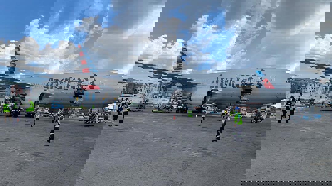 FORT WORTH – Como parte de la iniciativa de la Casa Blanca para compartir al menos 80 millones de dosis de vacunas estadounidenses alrededor del mundo este verano, American Airlines transportó 1.5 millones dosis de vacunas contra el coronavirus (COVID-19) desde el Aeropuerto Internacional O'Hare de Chicago (ORD) al Aeropuerto Internacional La Aurora (GUA), en la Ciudad de Guatemala en un avión Boeing 777-200. El envío partió de ORD esta mañana.